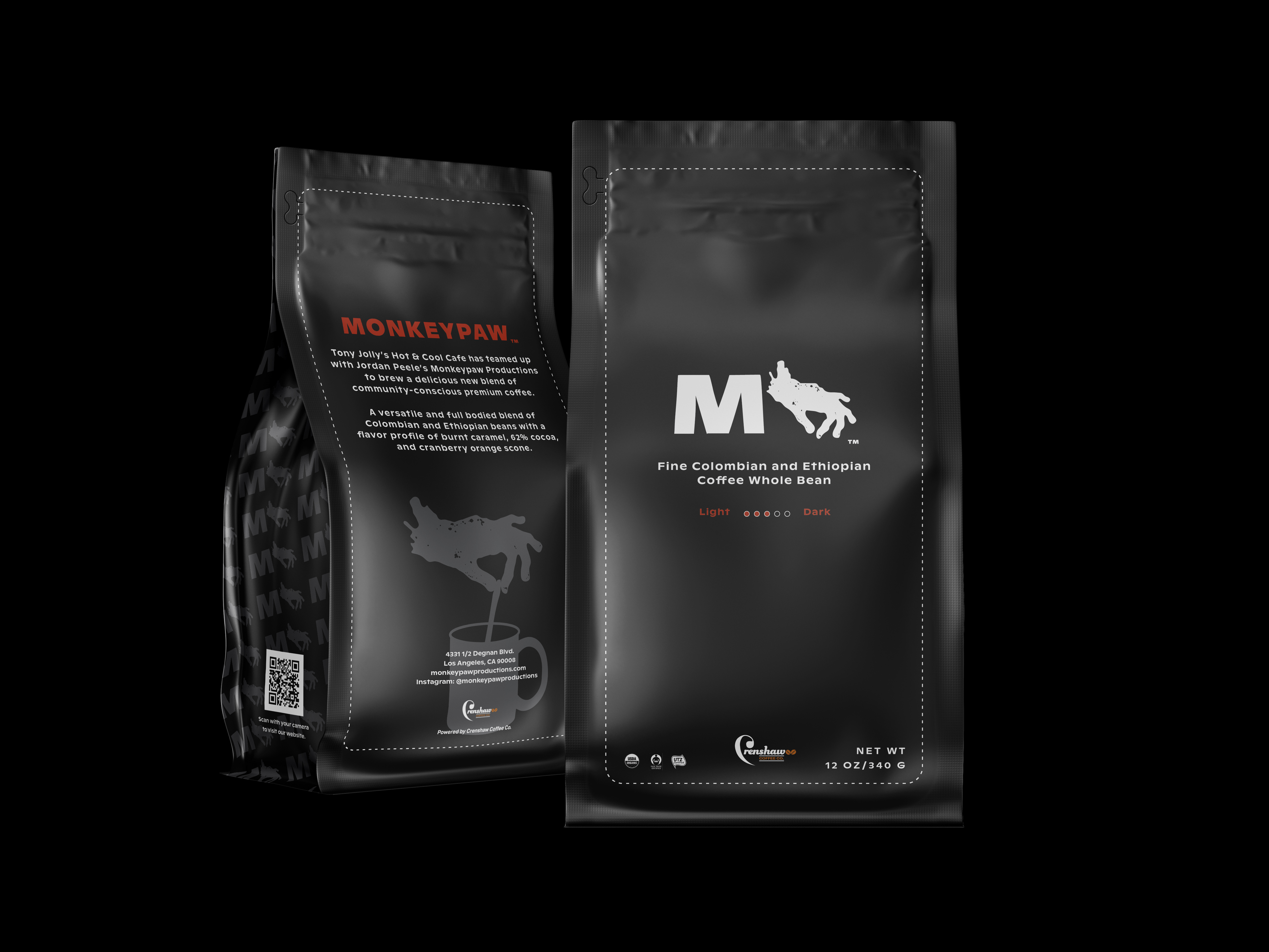 The Monkeypaw Blend has been directly sourced and brewed by Crenshaw Coffee Co. A versatile and full bodied blend with a flavor profile of burnt caramel, 62% cocoa, and cranberry orange scone.