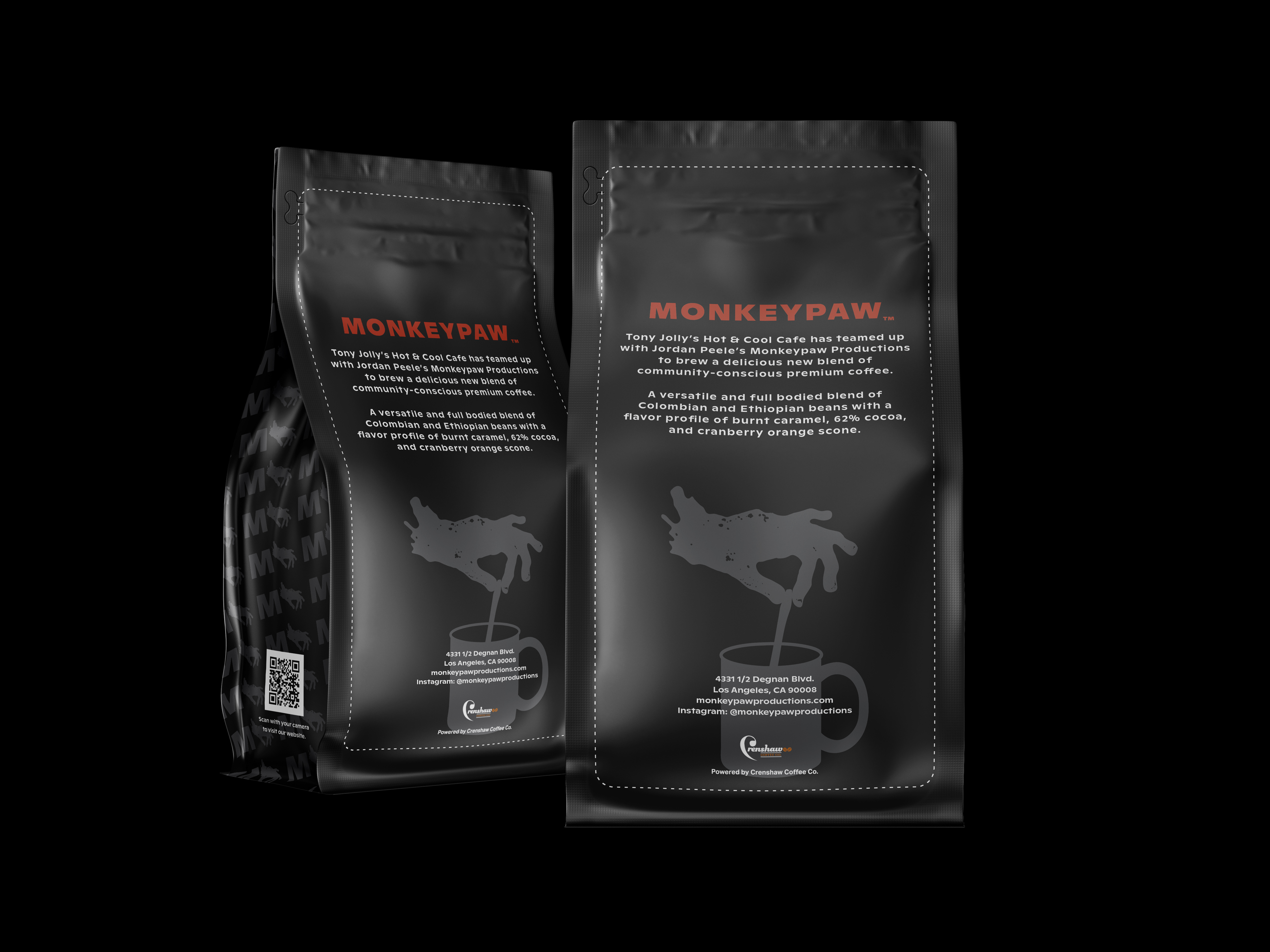 Monkeypaw is proud to partner with Hot & Cool Cafe, a local Black-owned and family operated coffee shop founded in 2018 by Tony Jolly and Tina Amin in Leimert Park, Los Angeles. The cafe's mission is to ensure that the community in South Central L.A. has access to Black-centered arts and culture, plant-based foods, and employment opportunities.